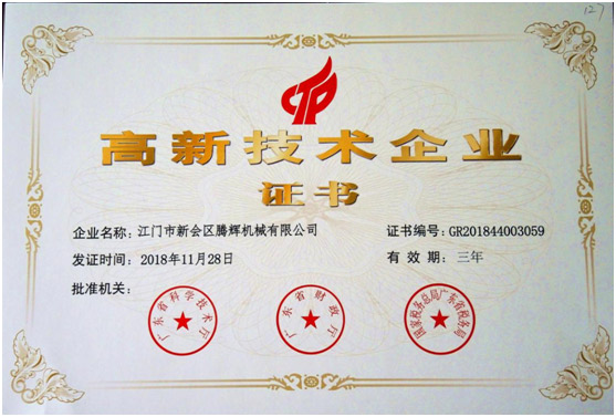 一直以來江門市新會(huì)區(qū)騰輝機(jī)械有限公司堅(jiān)持勇于創(chuàng)新,突破常規(guī),永不止步,敢于研發(fā)的精神,在全體員工的努力下本公司獲得“高新技術(shù)企業(yè)”。感謝政府對(duì)我們企業(yè)的技術(shù)認(rèn)可與支持,將來我們公司繼續(xù)堅(jiān)持技術(shù)創(chuàng)新為廣大的金屬成型生產(chǎn)企業(yè)降低生產(chǎn)難度,增加生產(chǎn)效率。